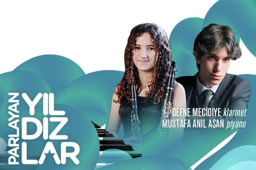 Parlayan Yıldızlar konserleri 20 Nisan Pazartesi akşamı 20.30’da Defne Mecidiye (klarnet) ve Mustafa Anıl Aşan (piyano) ile devam ediyor.