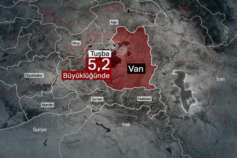 Van'ın Tuşba ilçesinde 5,2 büyüklüğünde deprem oldu. Deprem; Ağrı, Bitlis, Iğdır ve Hakkari'de de hissedildi.